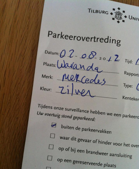 Update: Hoofd beveiliging Cees Braken laat weten dat de beveiliging -vanwege de zomervakantie- inderdaad meer tijd heeft om foutparkeerders te waarschuwen. “We hopen daar in de loop van het jaar profijt van te hebben. We controleren trouwens ook tijdens het collegejaar en delen dan waarschuwingen (gele bonnen) uit. We mogen echter niet beboeten. Ik heb de indruk dat sommige mensen onze bonnen verzamelen. Ze trekken zich er