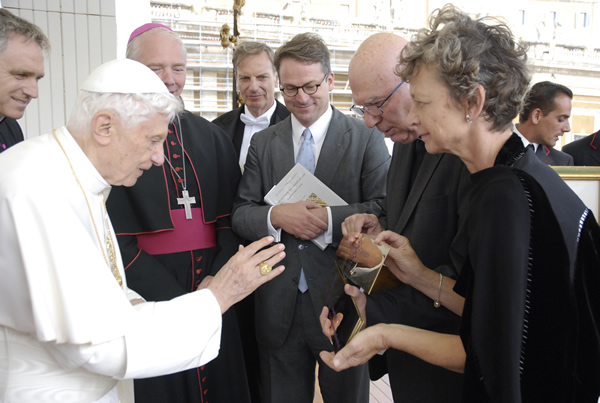 Een delegatie van de Theologische faculteit is gisteren op audiëntie geweest bij paus Benedictus XVI. Hij zegende persoonlijk de nieuwe gevelplaten van de  faculteit, blijkt uit beelden die op internet zijn geplaatst.