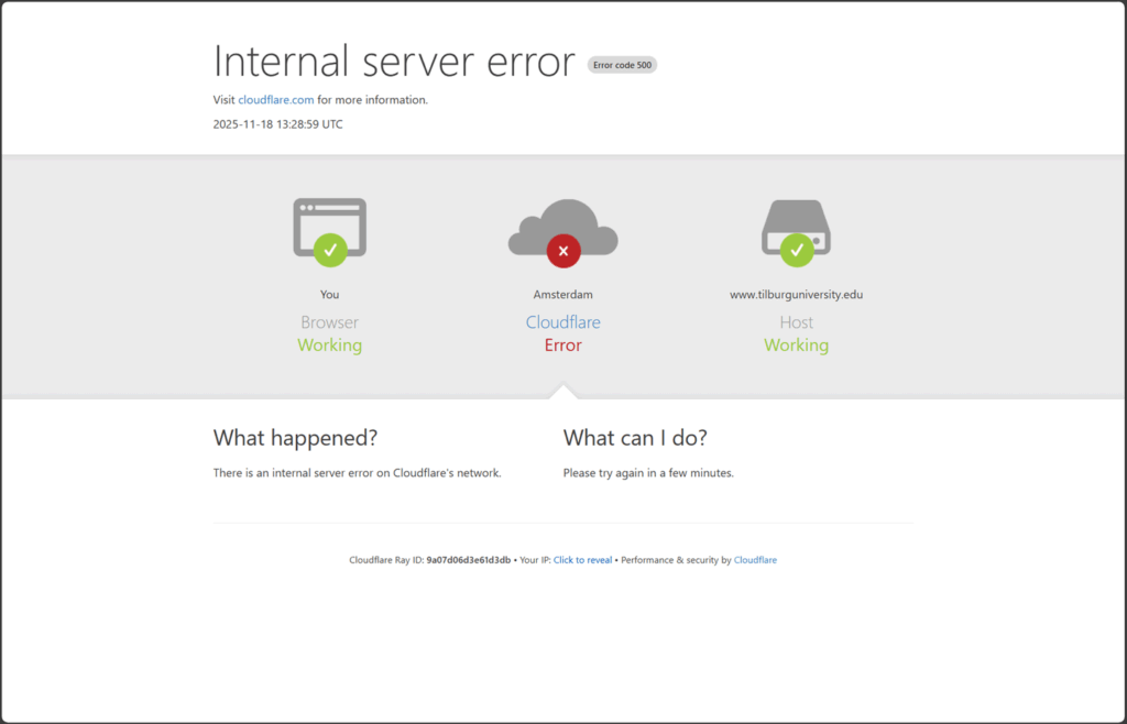 Ook website Tilburg University onbereikbaar door wereldwijde storing Cloudflare
