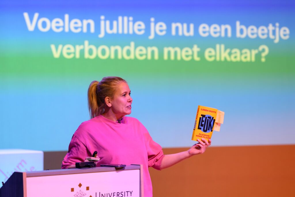 Het thema levert haar merkbaar plezier op, zien de bezoekers van een lezing voor Studium Generale op maandag 9 februari in de Black Box. Even enthousiast steekt Duits van wal in een gesprek met Univers over de betekenis van plezier in onze gefragmenteerde samenleving.