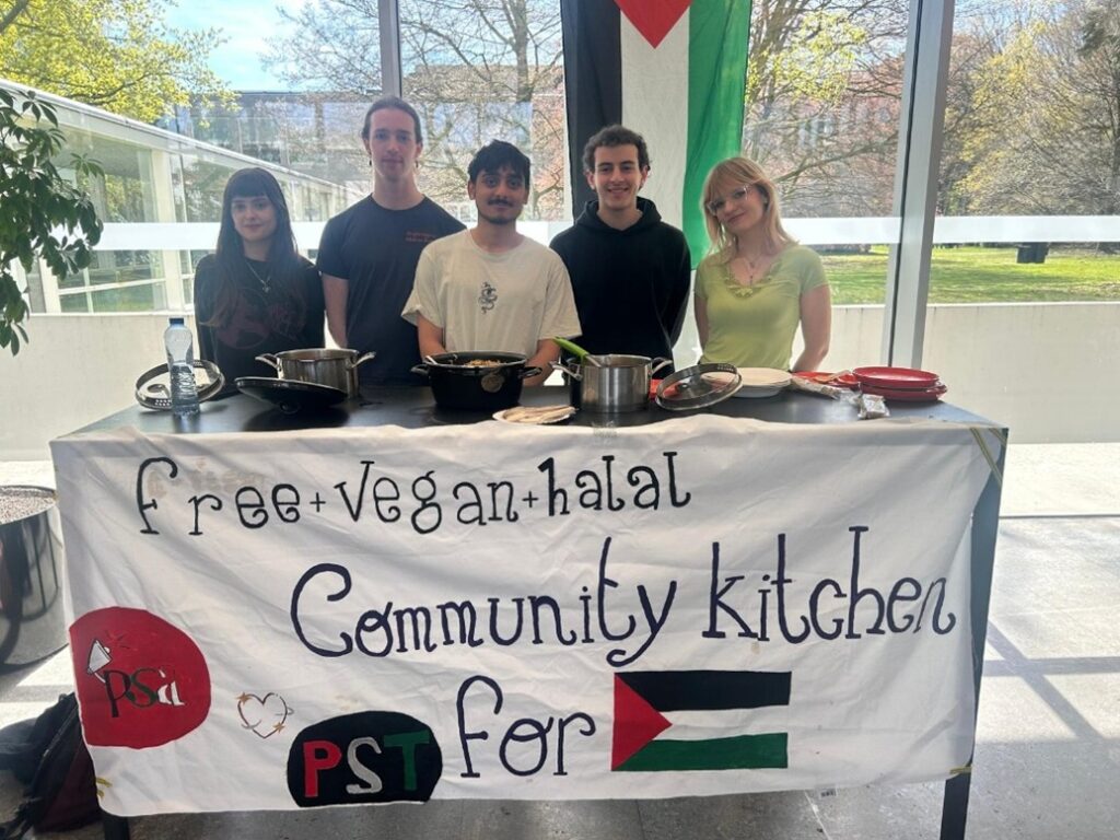 De zogenoemde ‘community kitchen’ is een samenwerking tussen PSA en PST (Palestine Solidarity Tilburg). De keuken werd in september 2025 opgezet vanuit solidariteit met Palestina. Volgens hen staat de actie sinds kort ook in verband met hun kritiek op de hoge prijzen van de Mensa.